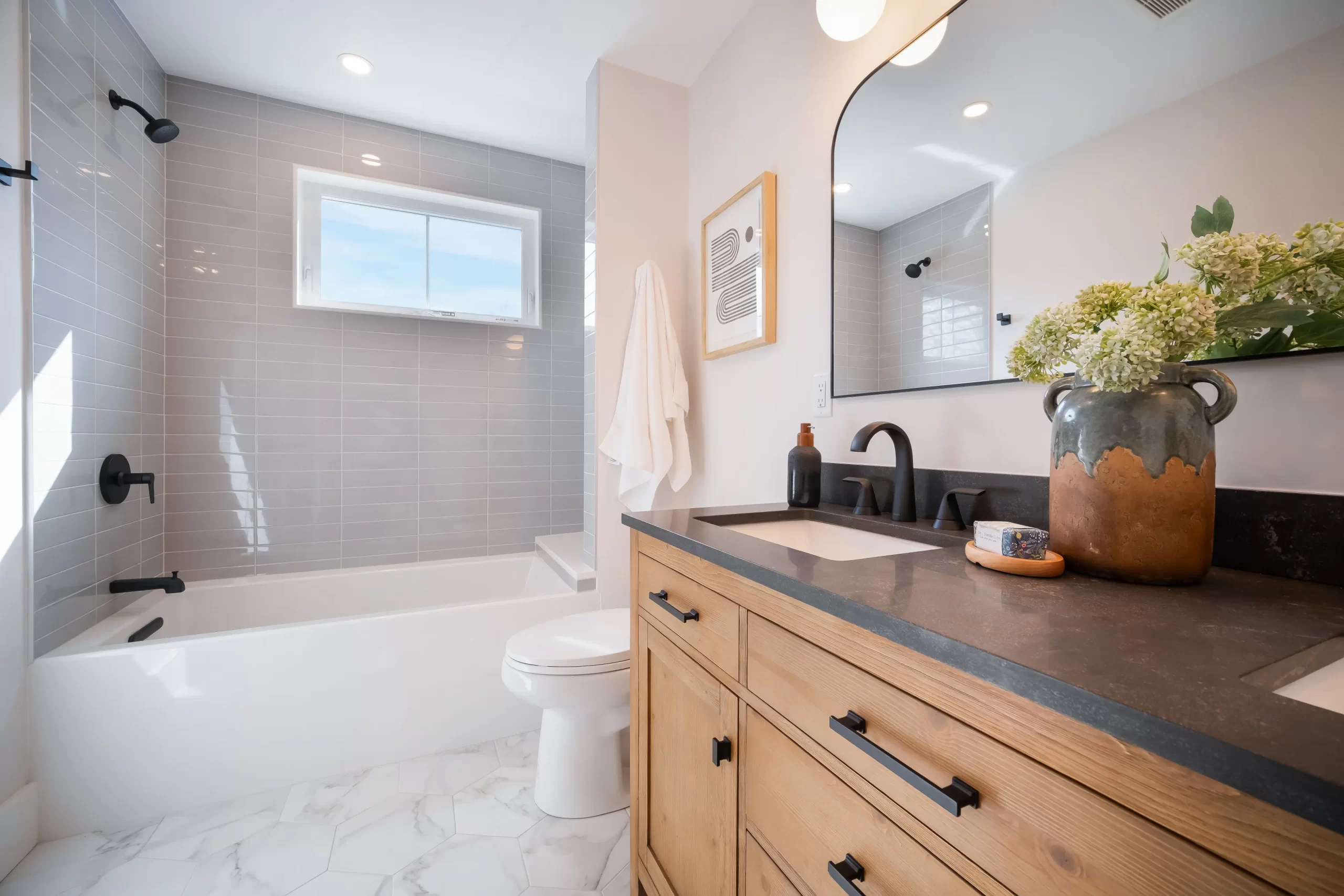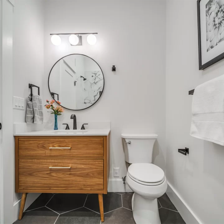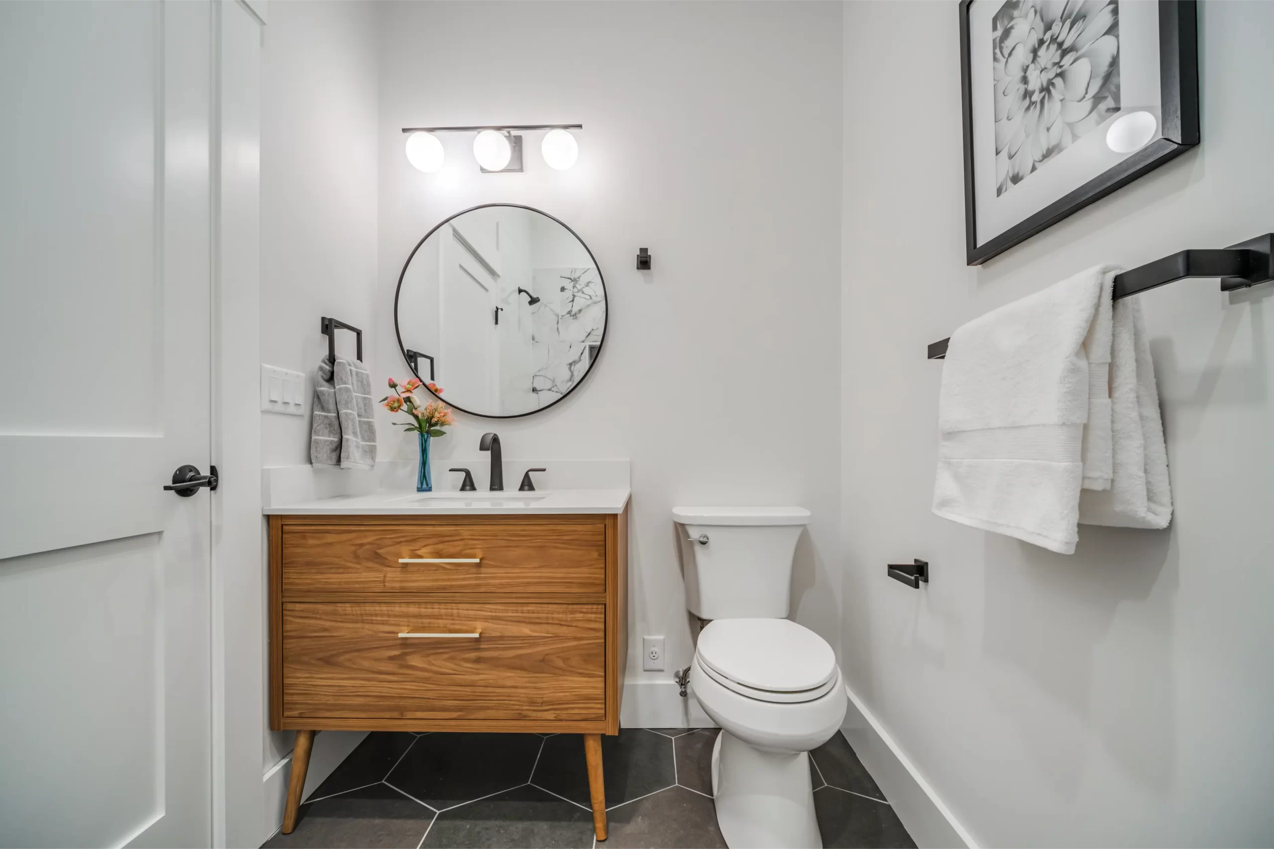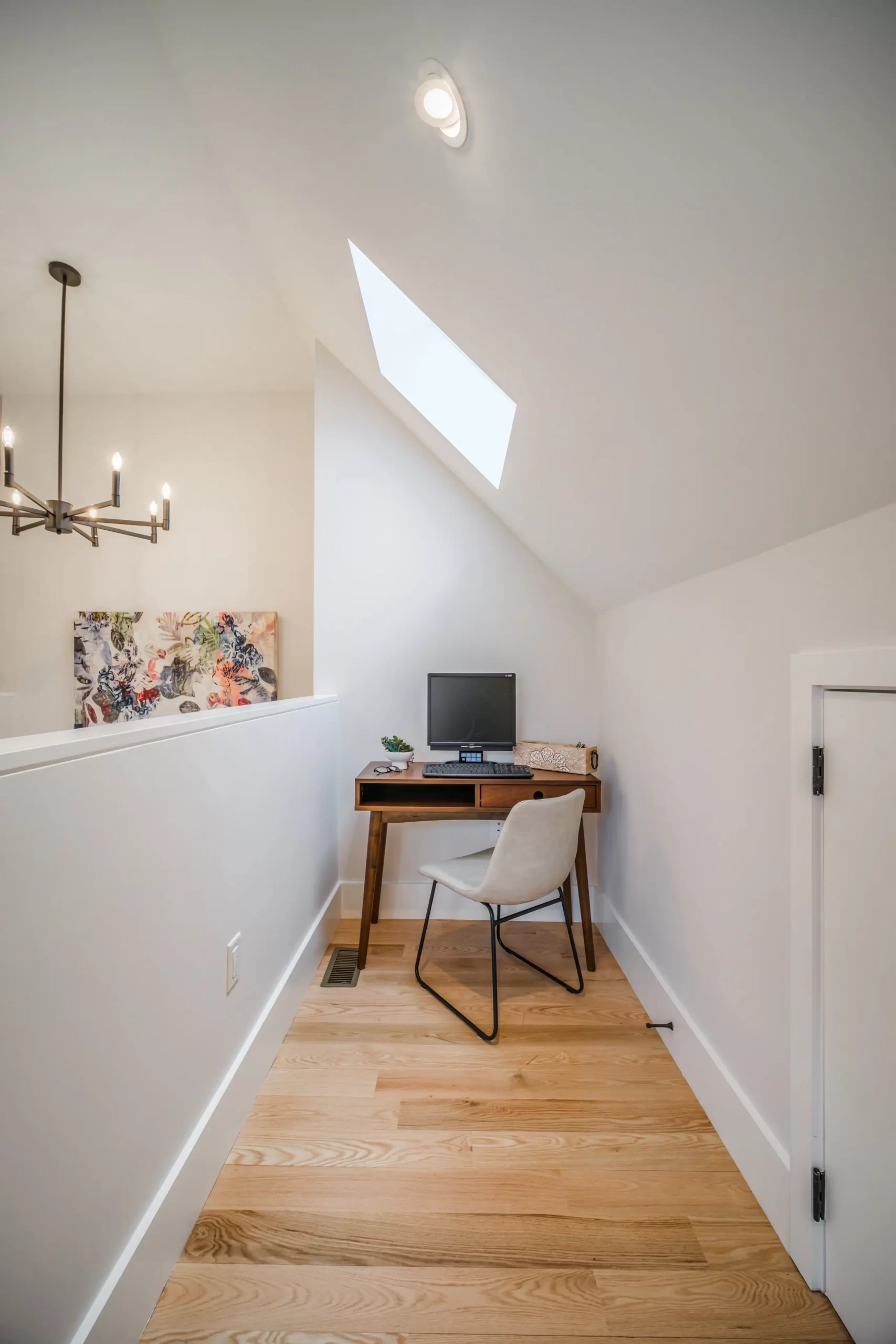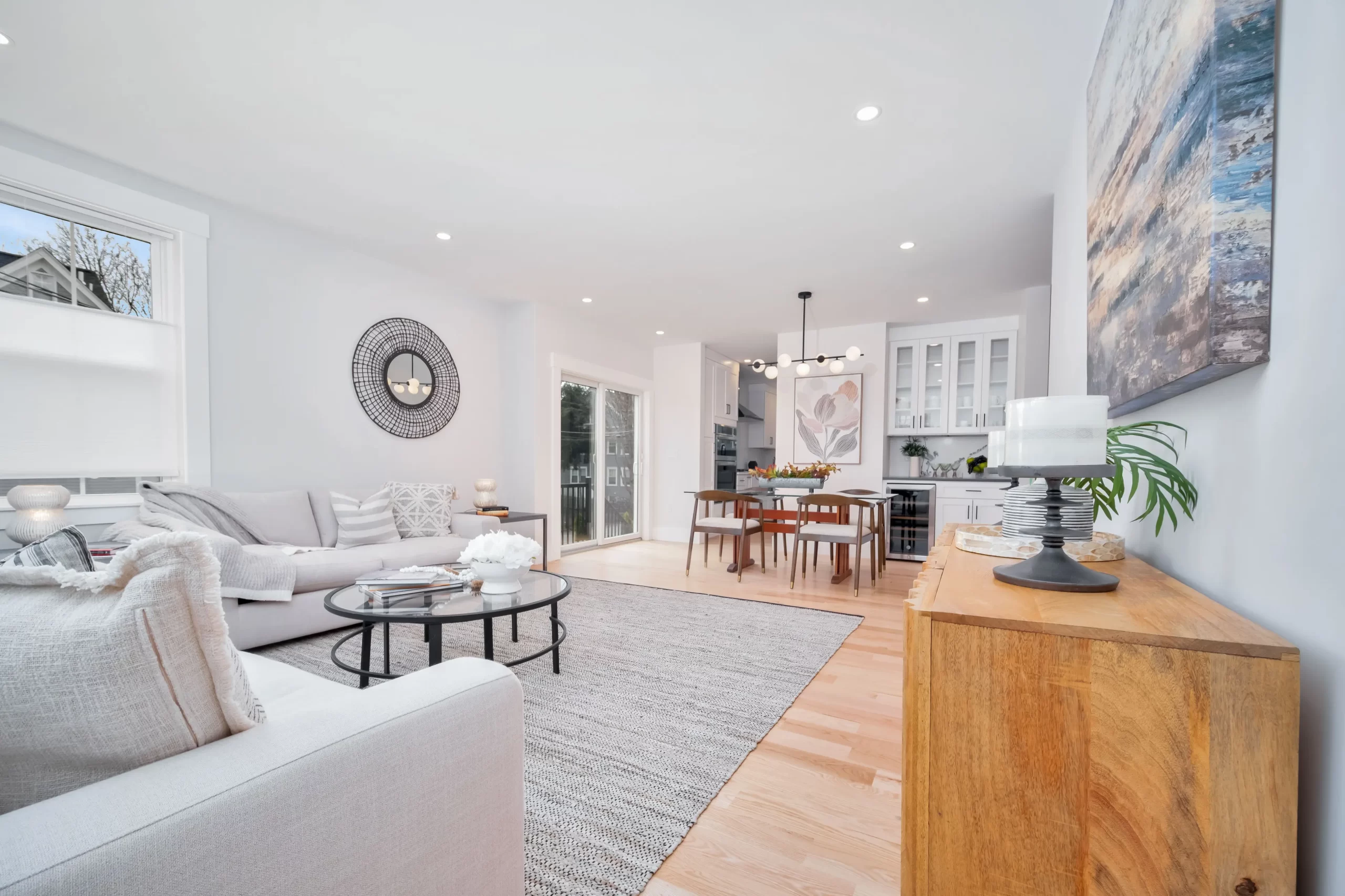 Bathed in light from top to bottom, this striking new home construction is a masterclass in vertical illumination and thoughtful design. Natural light cascades through the stairwell, flowing down from skylights and sizable windows to brighten each level with a warm, airy glow. The first floor offers a distinctly social layout, where an open-concept living and dining area invites effortless entertaining. Just beyond, a cozy, modern kitchen anchors a more intimate space—complete with a family room, bedroom, and full bath—creating a seamless blend of public and private living. This home contains six bedrooms and four full bathrooms, built into a spacious and cohesive layout, each bedroom offers effortless comfort and privacy. Sliding doors offer easy access to the backyard, extending the home’s livability outdoors. At night, a sculptural chandelier suspended in the stairwell casts a soft, ambient light, transforming the vertical core of the home into a glowing architectural centerpiece.