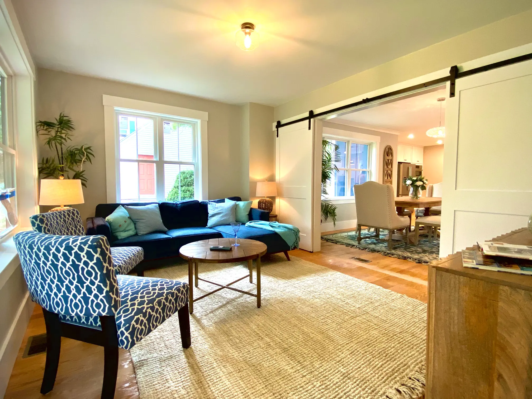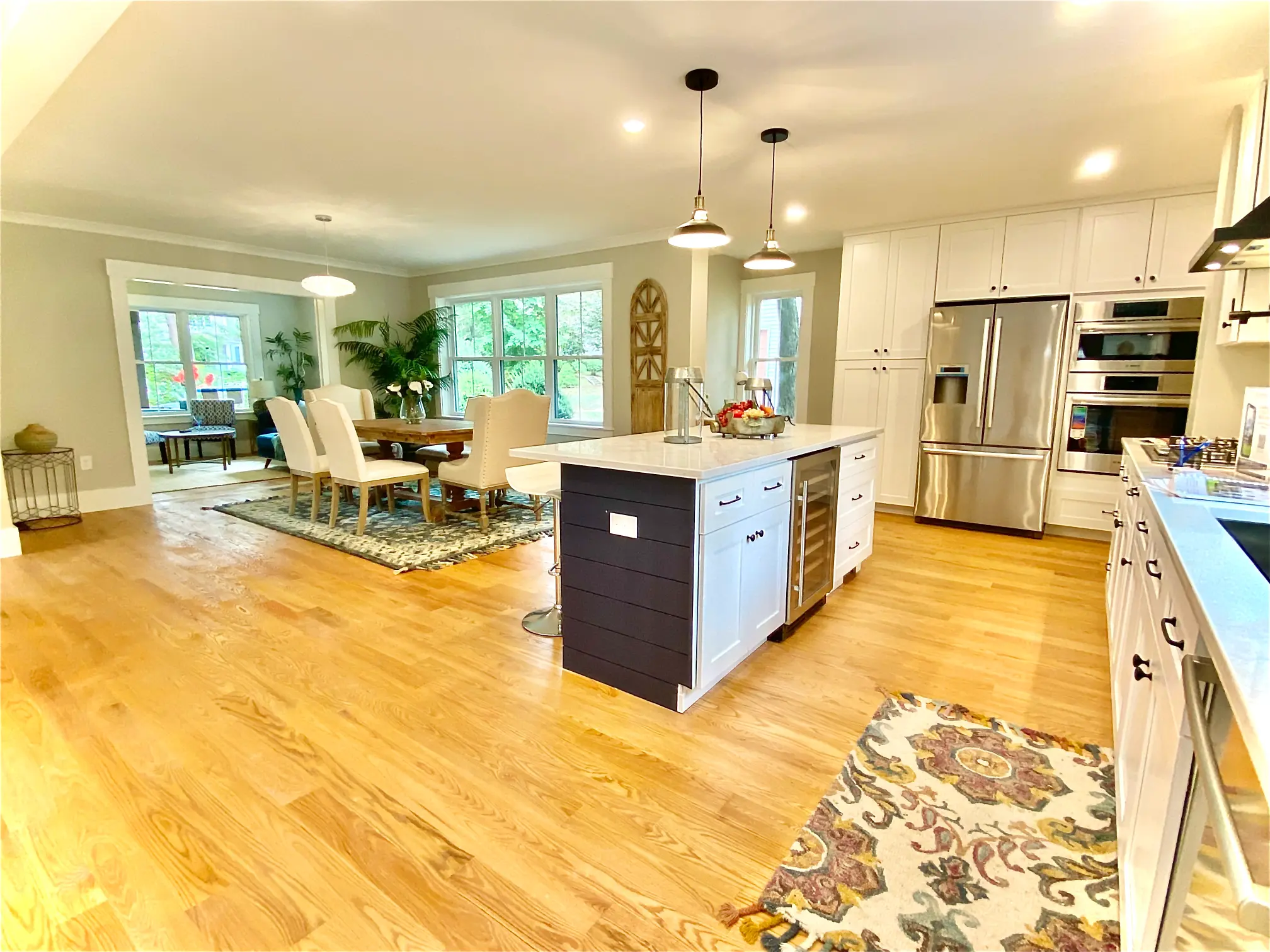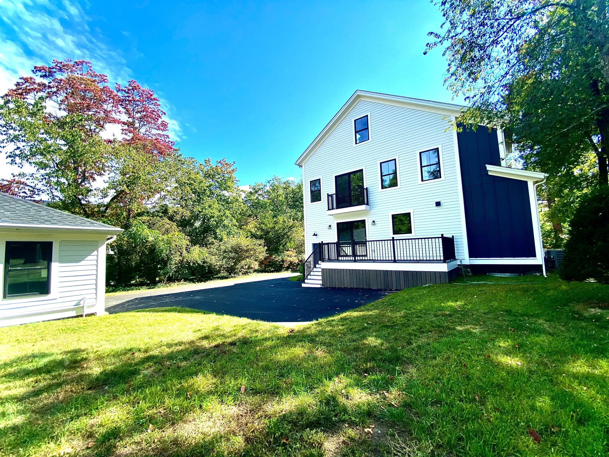 Blending charm with contemporary comfort, this stunning new construction reimagines modern farmhouse living on a grand scale. With five bedrooms and four beautifully appointed baths, the home sits on an expansive lot that offers both space and privacy. The master suite has a balcony and the living room has a deck, both providing sweeping views of the lush backyard—perfect for morning coffee or evening unwinding. A spacious deck invites outdoor gatherings and quiet moments alike, while oversized windows and strategically placed skylights flood every corner of the home with natural light. At the front, a welcoming porch sets a warm tone for the rest of the home, combining timeless curb appeal with today’s most desired amenities.