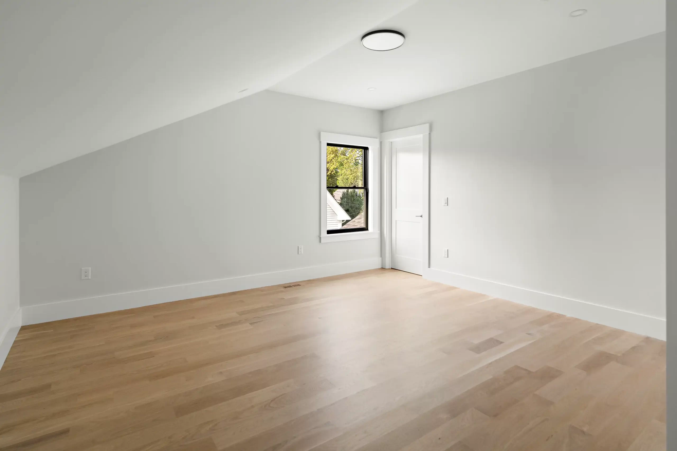 Incorporating overhead natural light into your remodeled attic can effortlessly transform it from a dark, unused area into a warm and inviting occupiable space. To enhance the natural light, light colored walls are included to amplify the sense of spaciousness and add an airy, fresh tone to your new, finished attic.