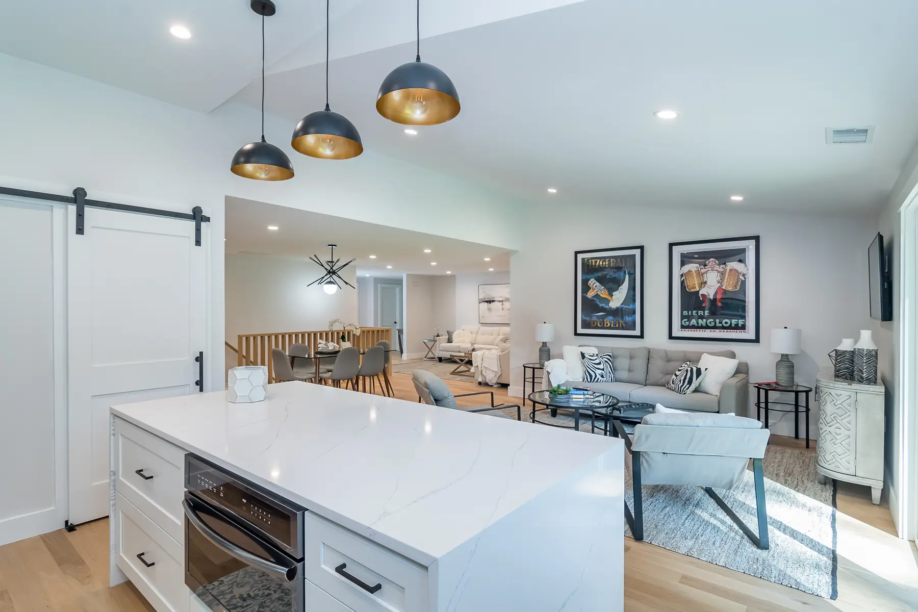 This thoughtfully designed home addition creates a perfect balance between openness and retreat. The kitchen offers a cozy, social, open-concept area connected to the family, dining, and living room. The expanded living space flows effortlessly, inviting movement and connection without feeling crowded. This home emphasizes the natural light and gorgeous views of nature right outside this home. A practical yet polished mudroom, complete with a conveniently connected bathroom, provides a functional transition zone from outdoors to in.