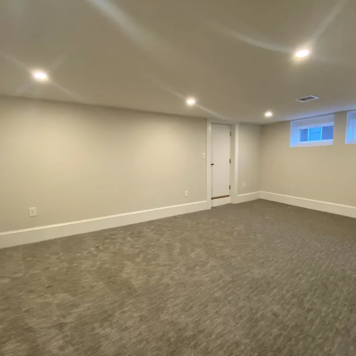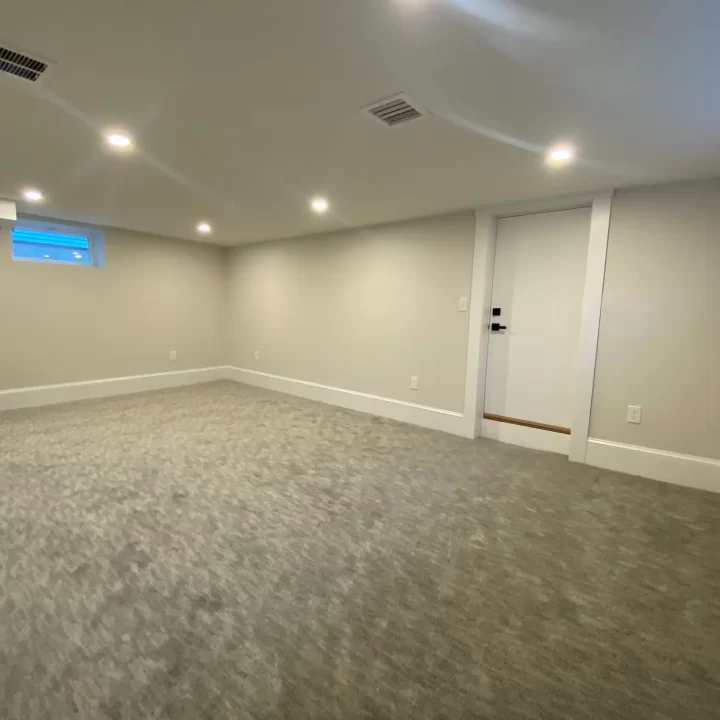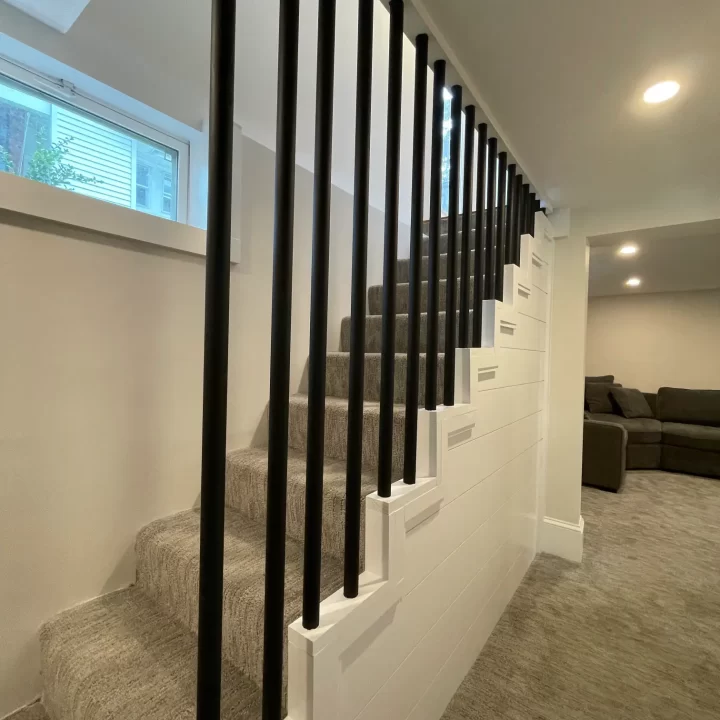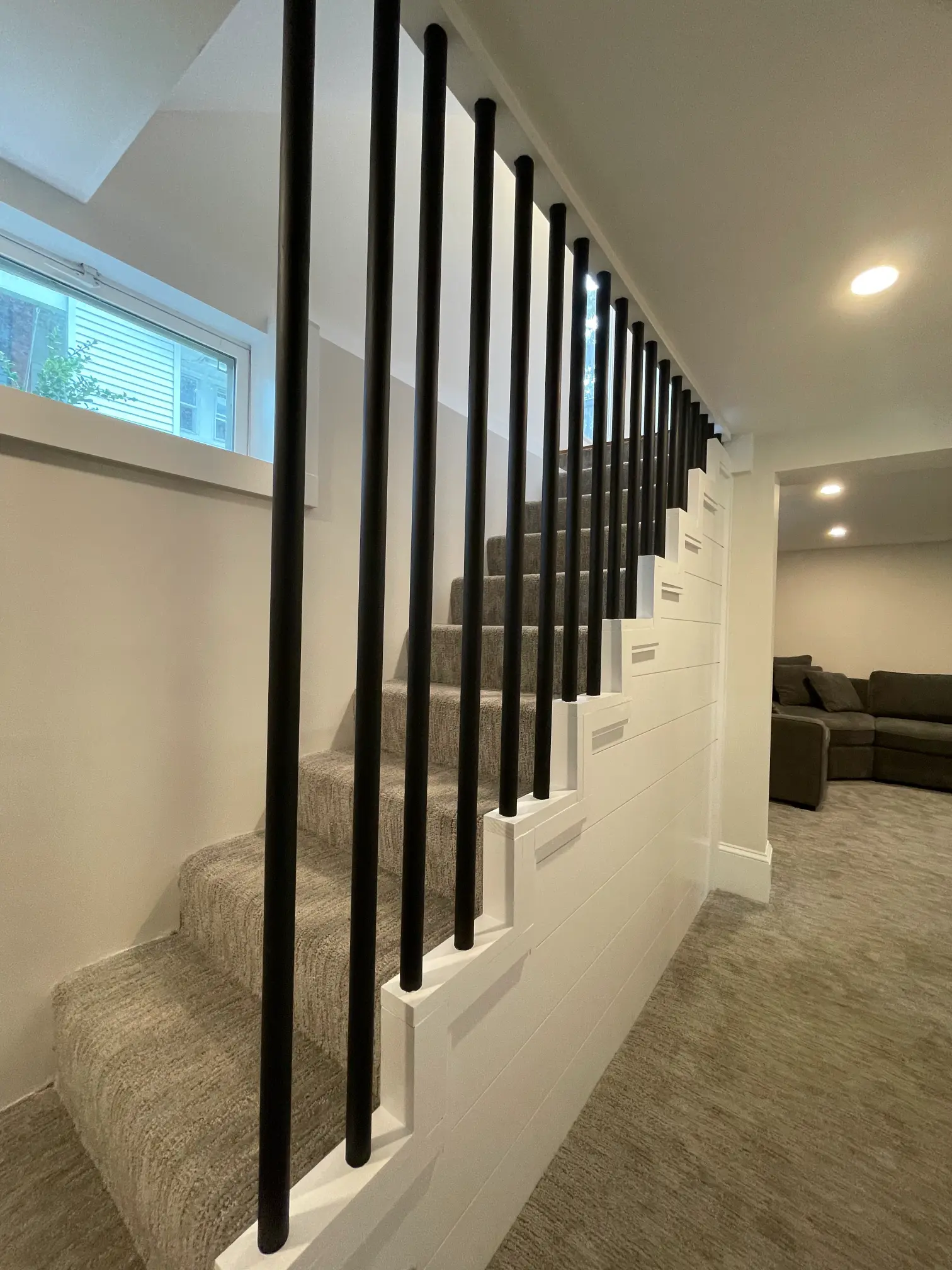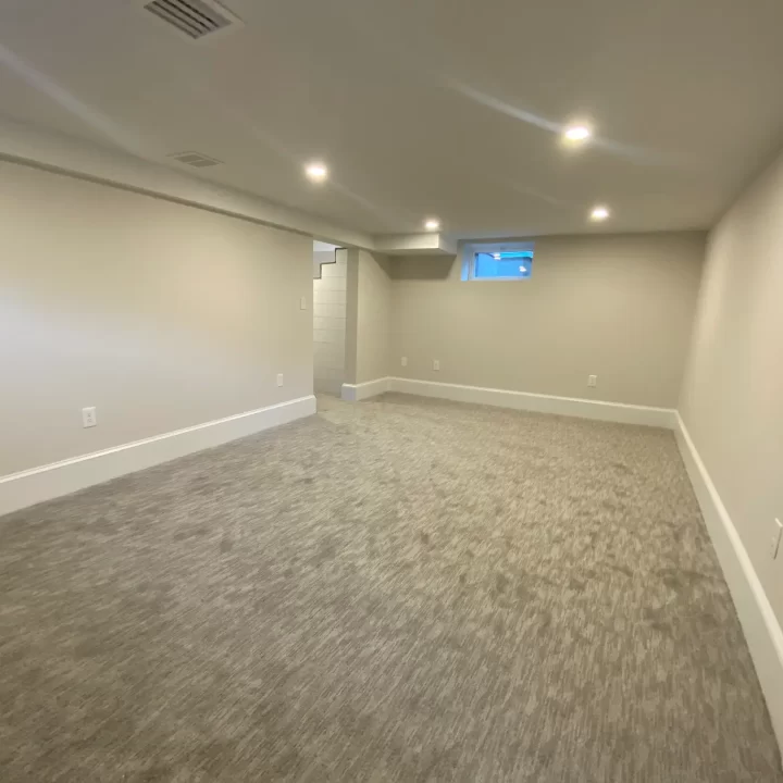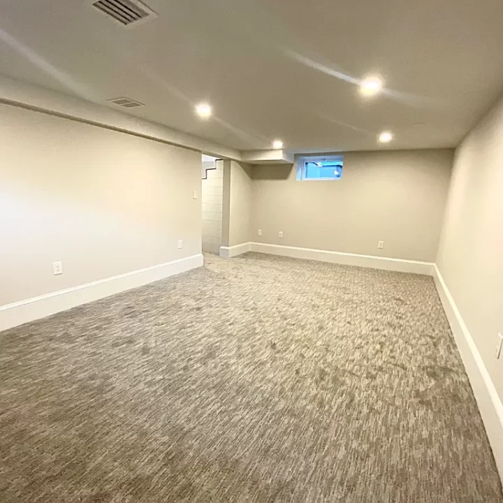 Step into this stunningly renovated basement, where modern design meets cozy functionality. The transformation begins with a sleek new staircase that effortlessly guides you into the heart of the space, setting the tone with clean lines and contemporary finishes. The living room invites relaxation with its soft, neutral palette, layered textures, and thoughtfully placed lighting that creates an inviting ambiance. Just beyond, the brand-new bathroom is a true showstopper—boasting minimalist fixtures, a spacious shower, and matte black accents that add just the right touch of sophistication. Whether hosting guests or enjoying a quiet evening in, this basement redefines lower-level living with elevated style and comfort.